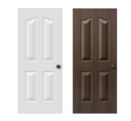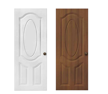 Melamine Door Skin - Ready-to-use panel moulded doors that are available in 2 panel, 3 panel oval and 4 panel options and 3 different shades of wood i.e, Teak, Sapeli and Straight Grain Wenge.