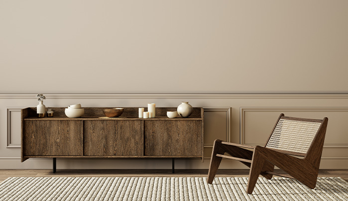 Walnut veneer pairs exceptionally well with contemporary and minimalist interiors. Its clean grain structure and deep, consistent colour help create contrast in otherwise neutral spaces. When combined with simple forms, matte finishes, and minimal detailing, walnut veneer enhances the space without overwhelming it.